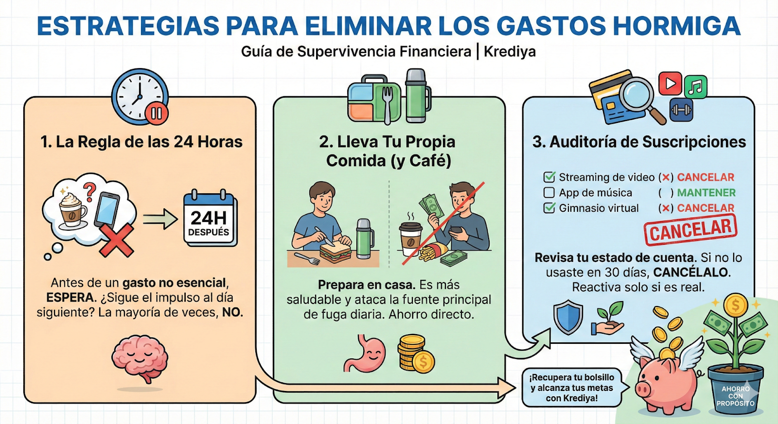 Eliminar los gastos hormiga no significa dejar de disfrutar la vida ni volverse un tacaño. Se trata de consumir con intención. Aquí tienes 3 estrategias clave: